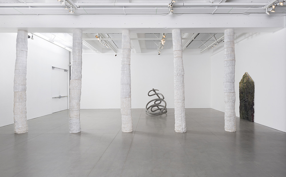 “穆隆古”(Mulungu)一词在斯瓦西里语中原指上帝的意思,在南非种族隔离时期被当地黑人用来形容那些在该国具有上帝般权力和地位的白人,如今也包括富裕的黑人和棕色人种。“等待穆隆古”(Waiting for Mulungu)一名借用自塞缪尔·贝克特的荒诞派戏剧《等待戈多》(Waiting for Godot),辛非维·恩祖彼透过绘画、二手材料和雕塑重新审视了这部戏剧中关于史诗、悲剧等概念的阐述。除此以外,这位年轻艺术家从非洲民间文学的魔幻现实主义里提取创作灵感,塑造了俏皮而形象各异的人物,在粉红的空间里搭建起一个荒诞、迷幻、具有多元文化色彩的狂欢世界。