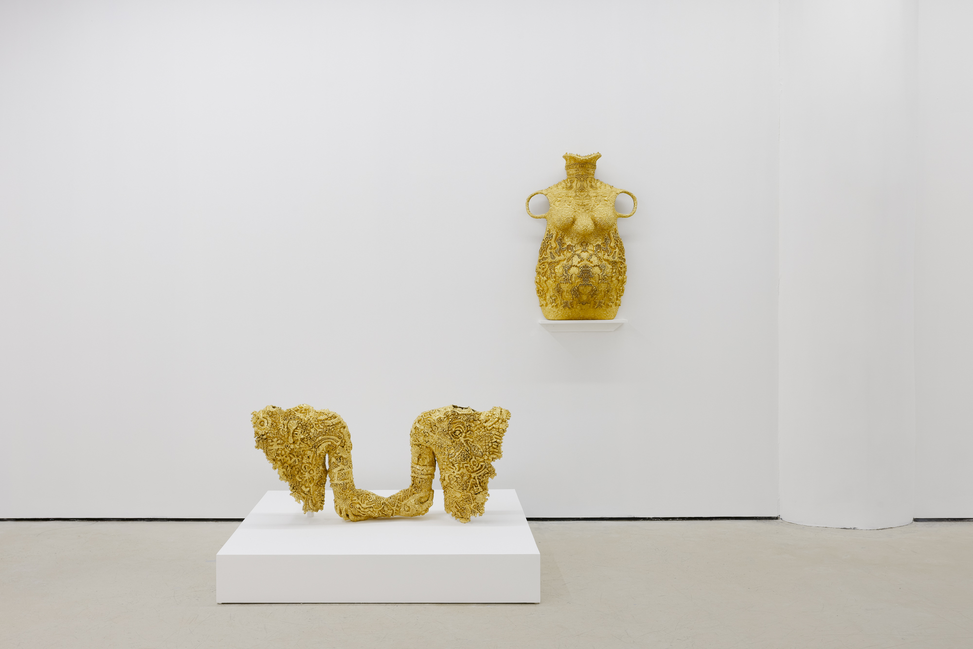 基于上述研究,Liu 将这些日常形态转化为具有表演性的“表面”,使其展开多重交错的文化传递叙事。他的实践呈现出一种由离散经验与文化跨越所塑造的材料浪漫主义气质——在渴望被理解、被阅读的欲望,与让表面自行消解、保持暧昧的冲动之间持续协商。