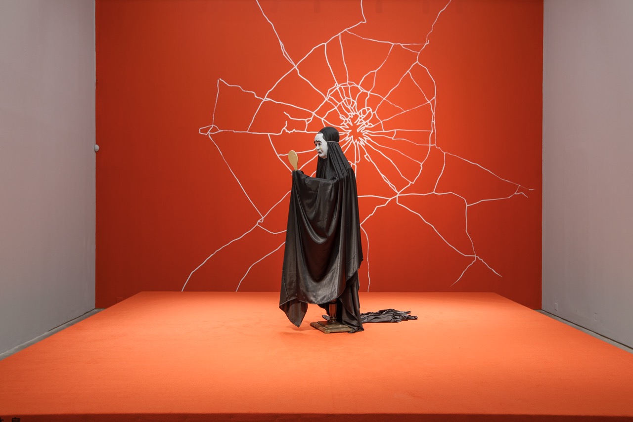 展厅的尽头是巨型破碎的镜面。似乎有人在空间中私语:“一切并非牢不可破。”艺术家通过本次展览聚合其数年对影像与空间的互文关系的总结,加诸于内心世界中信仰、经验,以及周遭世界合成的漩涡之眼,让旧与新作、色彩象征之间的比对,将观者带入那个镜像错位的观念世界。